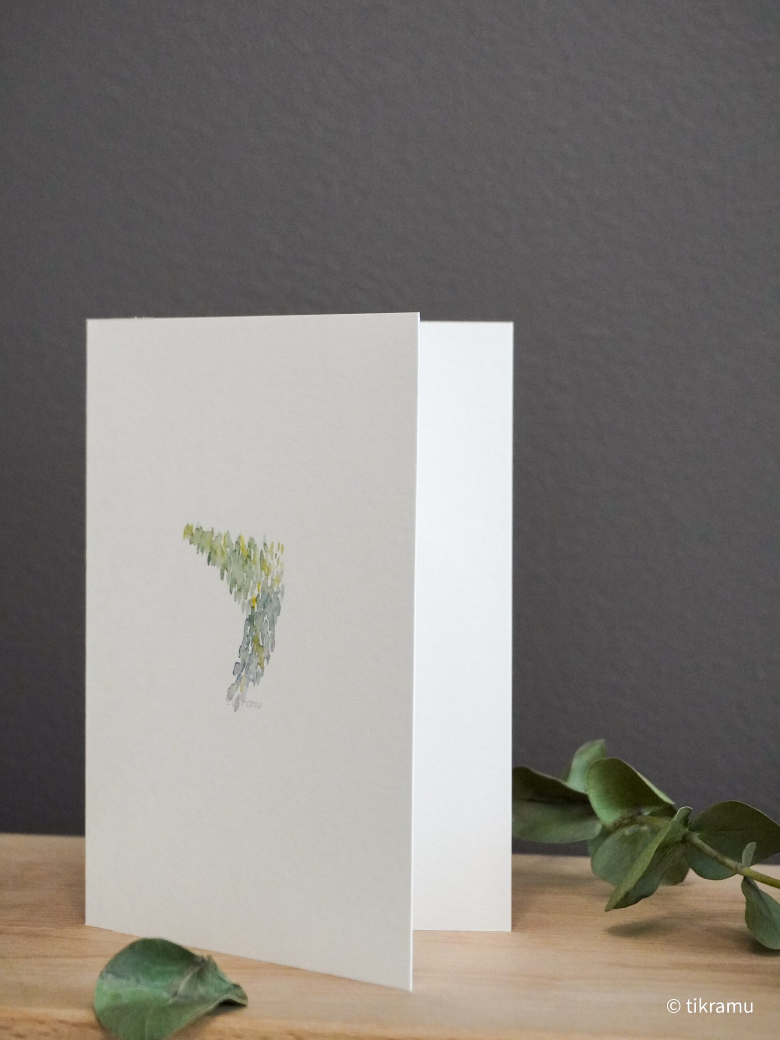 Akvarele pieštas piešinys, kuris vėliau pritaikytas spausdinimui. Galima matyti, kaip susilieja, žaidžia tikros spalvos. Liedžia pažadinti vaizduotę ir šiame abstrakčiame piešinyje rasti įvairias formas, pasislėpusius gyvūnus, o gal tiesiog pasimėgauti ramumu besislepiančiu netobuluose potėpiuose.
