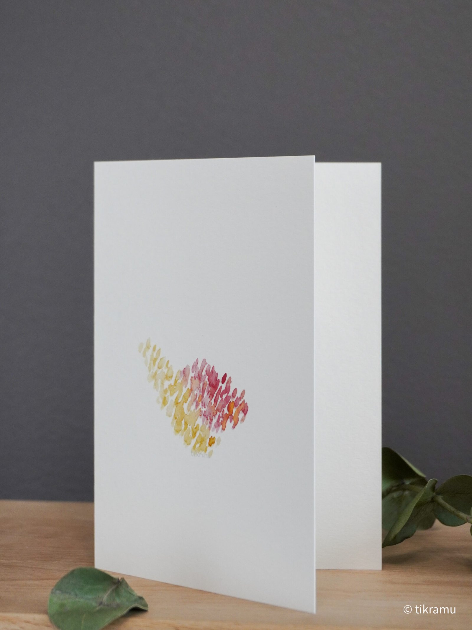 Akvarele pieštas piešinys, kuris vėliau pritaikytas spausdinimui. Galima matyti, kaip susilieja, žaidžia tikros spalvos. Liedžia pažadinti vaizduotę ir šiame abstrakčiame piešinyje rasti įvairias formas, pasislėpusius gyvūnus, o gal tiesiog pasimėgauti ramumu besislepiančiu netobuluose potėpiuose.