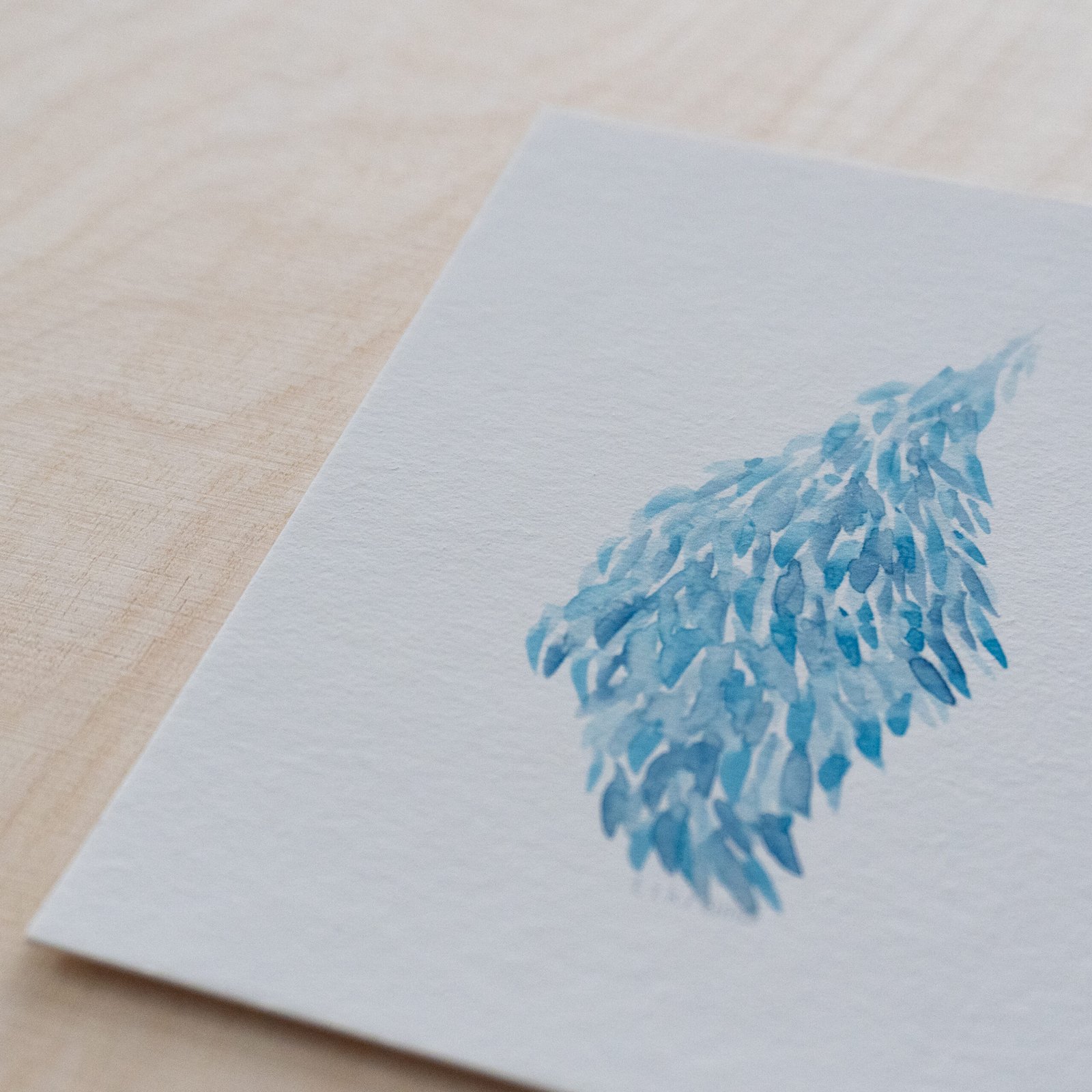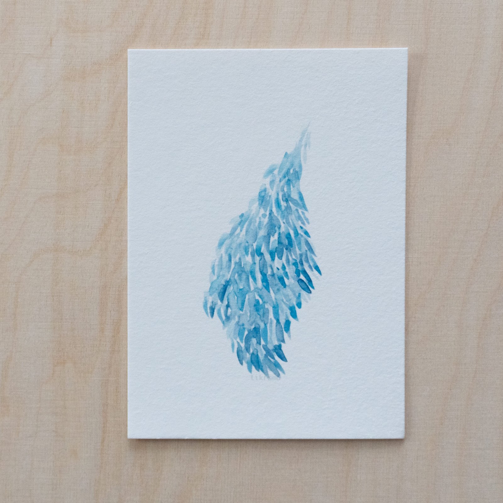 Akvarele pieštas piešinys, kuris vėliau pritaikytas spausdinimui. Galima matyti, kaip susilieja, žaidžia tikros spalvos. Liedžia pažadinti vaizduotę ir šiame abstrakčiame piešinyje rasti įvairias formas, pasislėpusius gyvūnus, o gal tiesiog pasimėgauti ramumu besislepiančiu netobuluose potėpiuose.