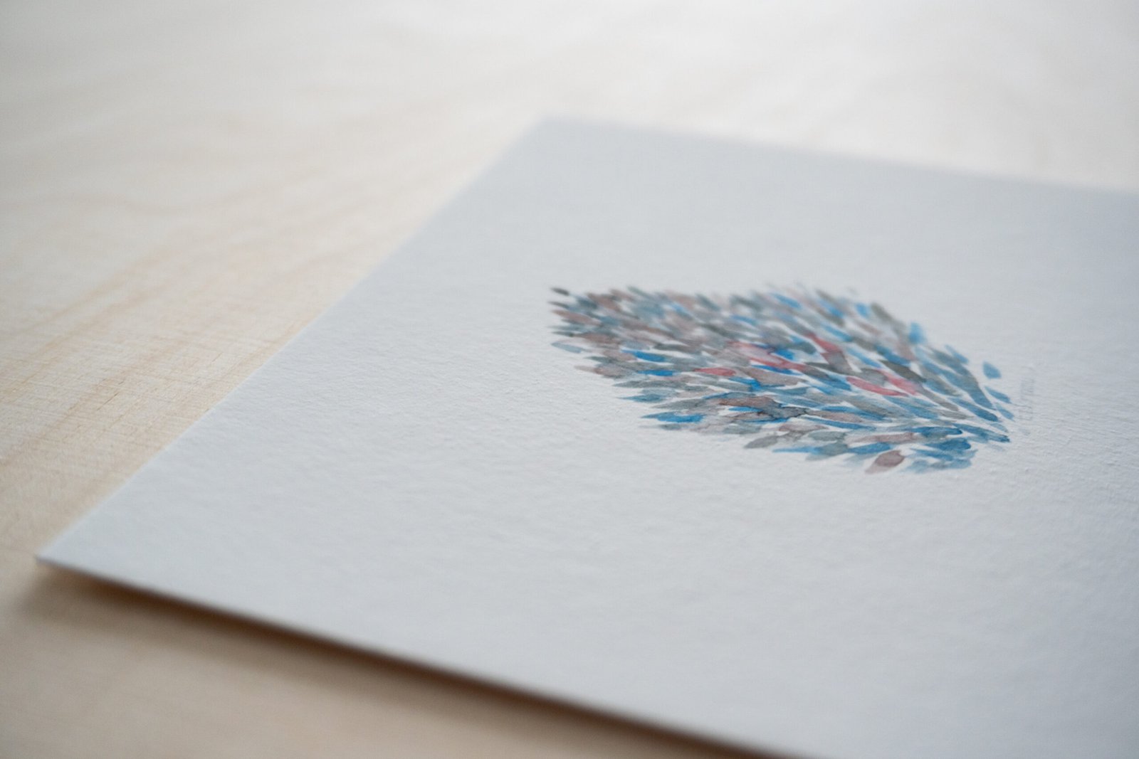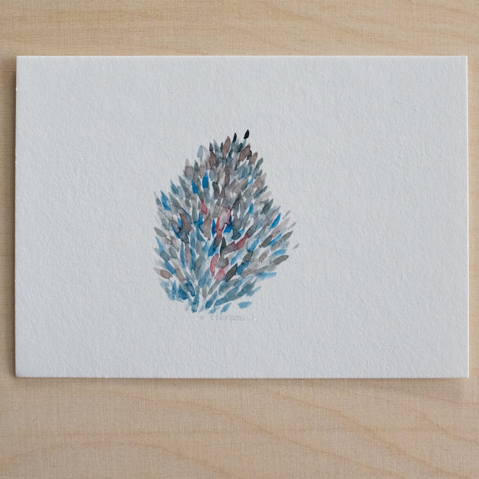 Akvarele pieštas piešinys, kuris vėliau pritaikytas spausdinimui. Galima matyti, kaip susilieja, žaidžia tikros spalvos. Liedžia pažadinti vaizduotę ir šiame abstrakčiame piešinyje rasti įvairias formas, pasislėpusius gyvūnus, o gal tiesiog pasimėgauti ramumu besislepiančiu netobuluose potėpiuose.