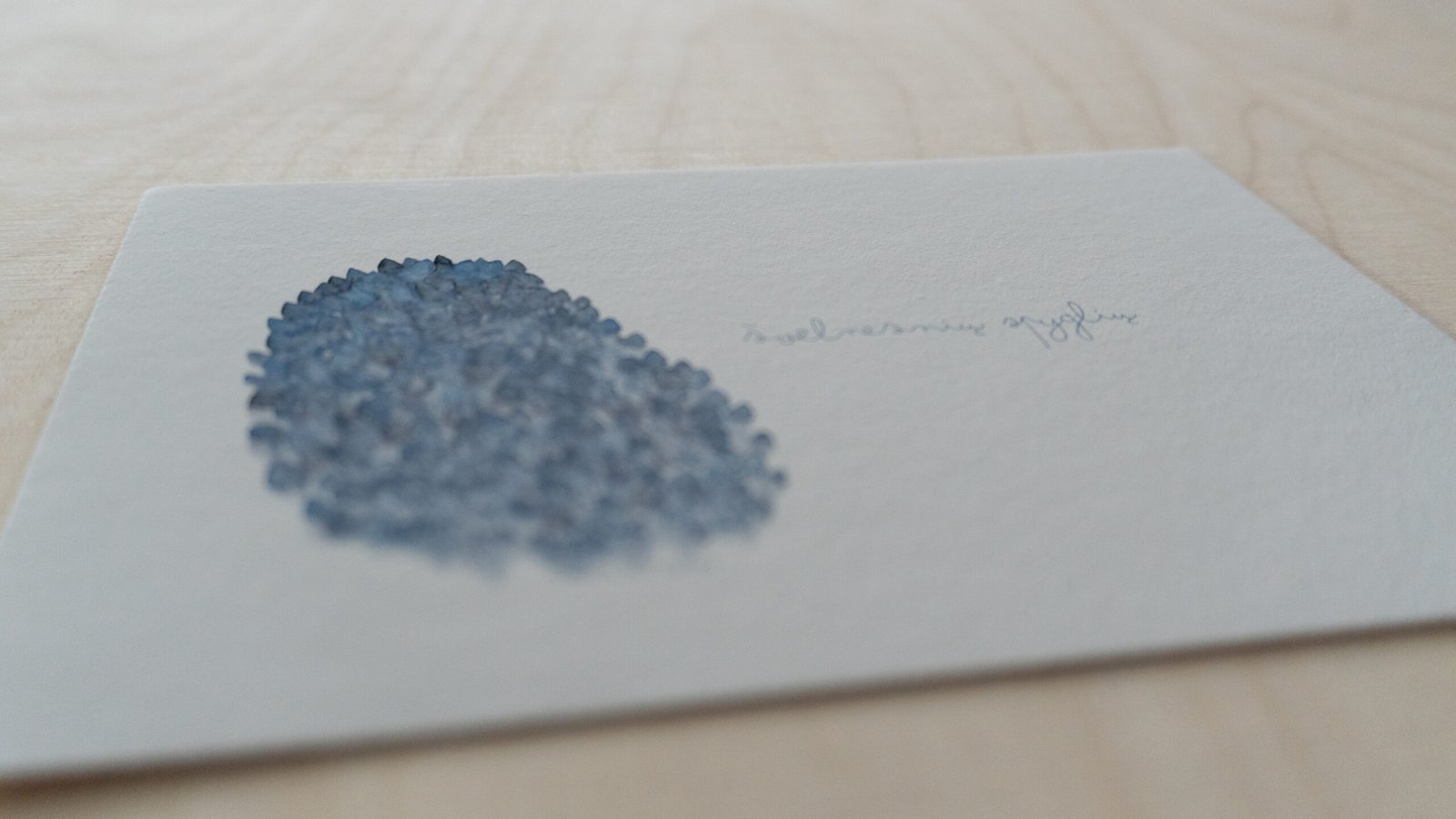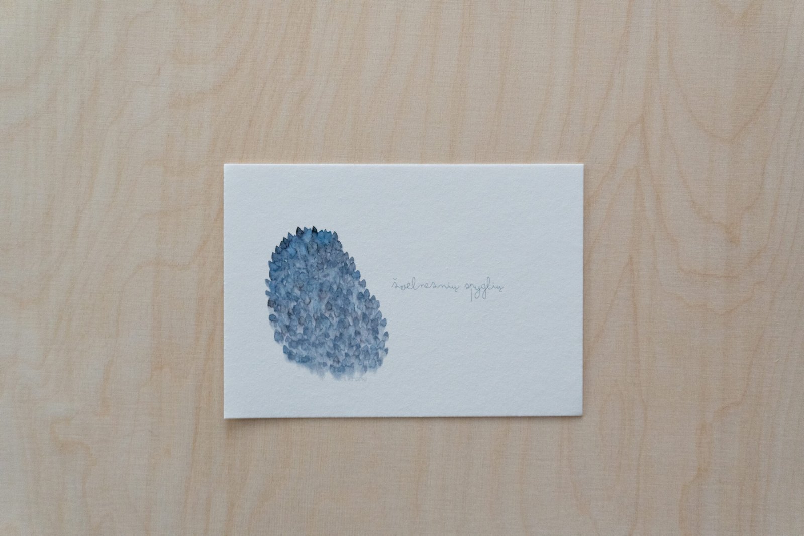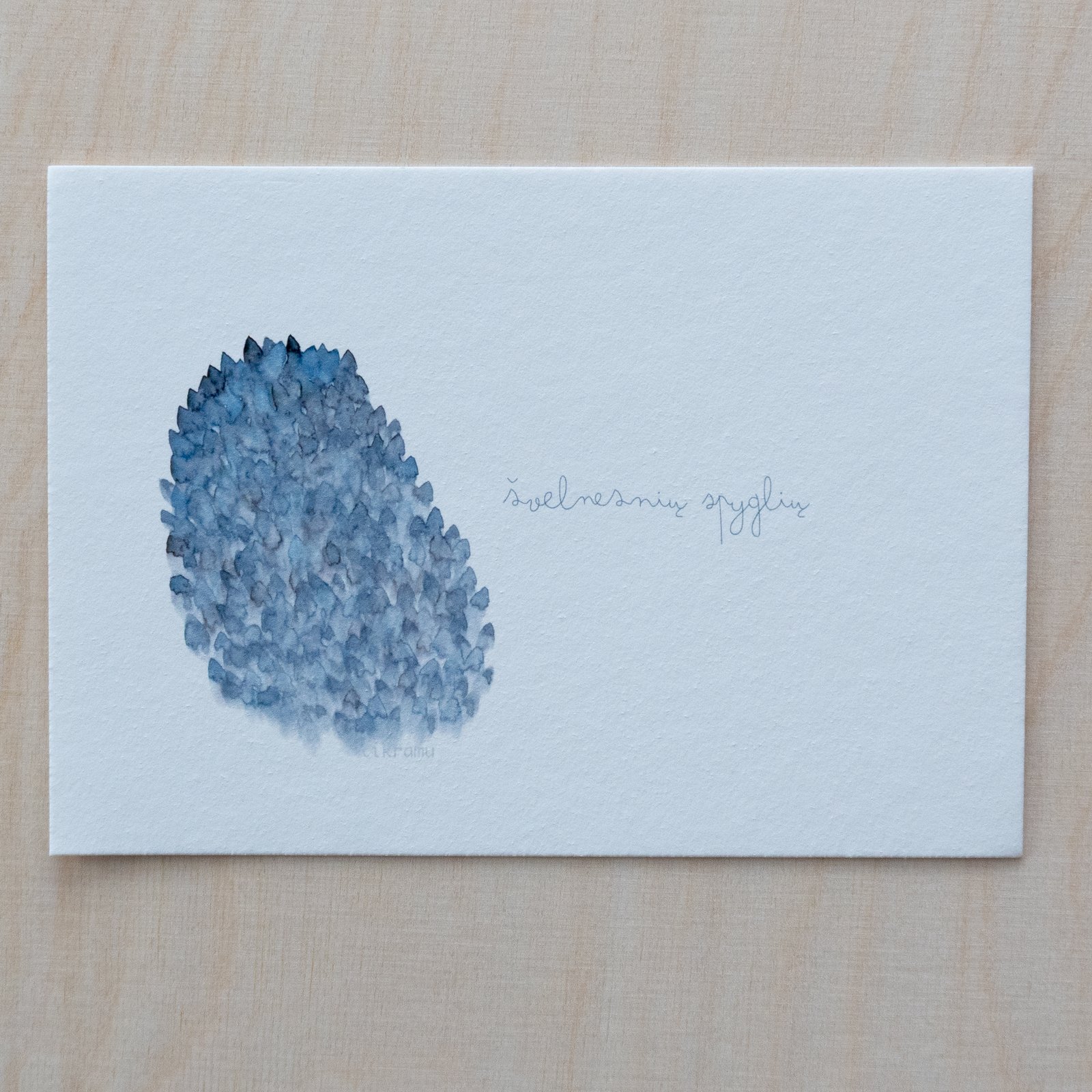 Akvarele pieštas piešinys, kuris vėliau pritaikytas spausdinimui. Galima matyti, kaip susilieja, žaidžia tikros spalvos. Liedžia pažadinti vaizduotę ir šiame abstrakčiame piešinyje rasti įvairias formas, pasislėpusius gyvūnus, o gal tiesiog pasimėgauti ramumu besislepiančiu netobuluose potėpiuose.